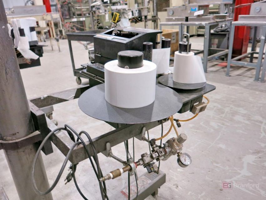 Sato Model S84 EX Label Printer on LSI Label Applicator, w/ LSI Adjustable Stand