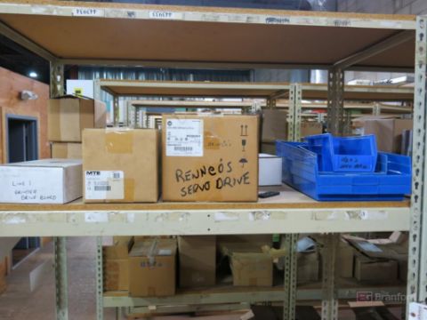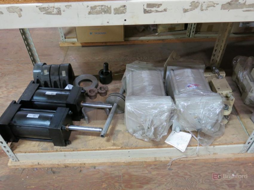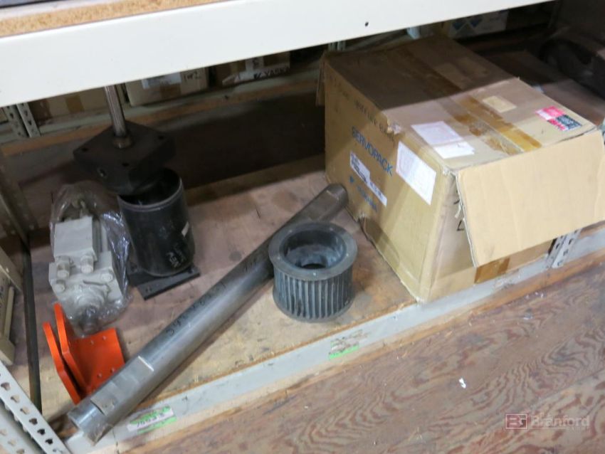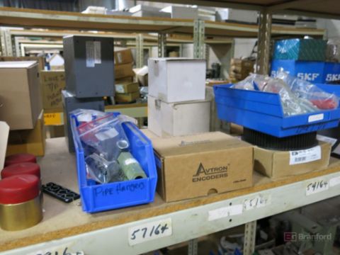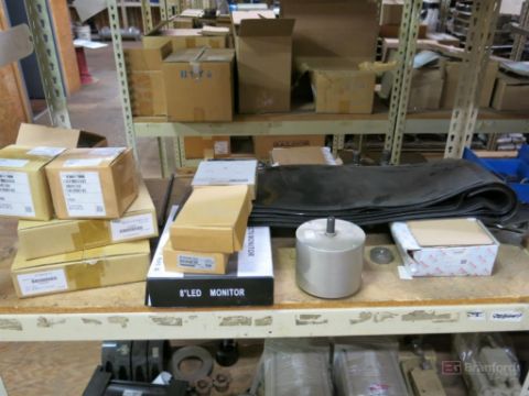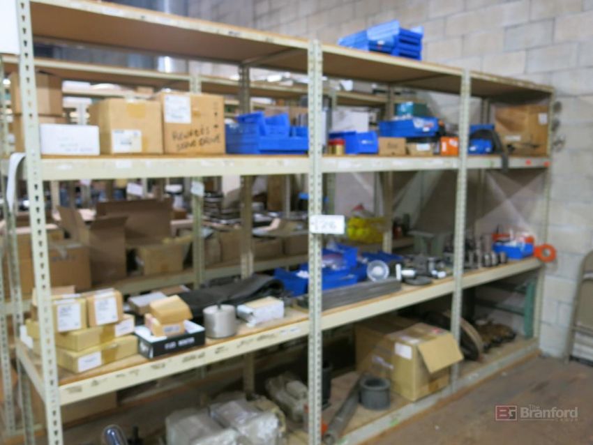 (3) Sections of Medium Duty Racks w/ Contents Incl But Not Limited To: Pneumatic Cylinders, 8" LED Monitors, Servo Drives, Bushings, Pulleys, Ballbearings, Other Industrial Related Items - Please Inspect