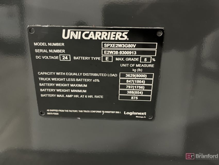 UniCarriers Electric Center Ride Pallet Jack w/ 48" Forks; Model: SPXE2W3G80V; S/N E2W38-9300913; 418-Hours