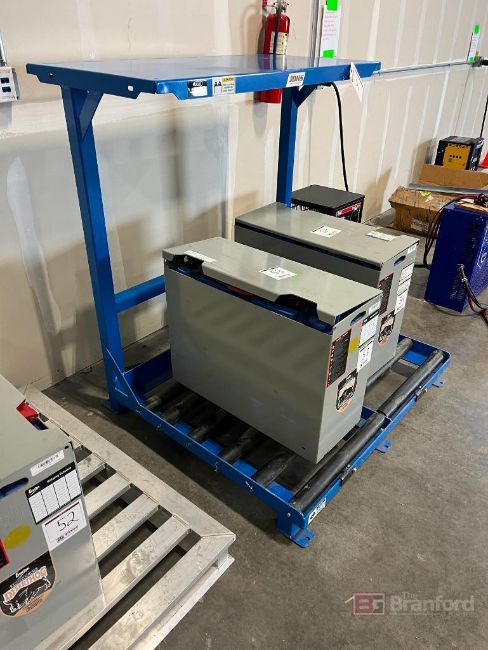 (1) Battery Handling Systems Battery Charging Rack. 3000-Lb Capacity per Roller Compartment. 800 lb Shelf Capacity. Model No: BS-24-2-SL. S/N 000164-2301