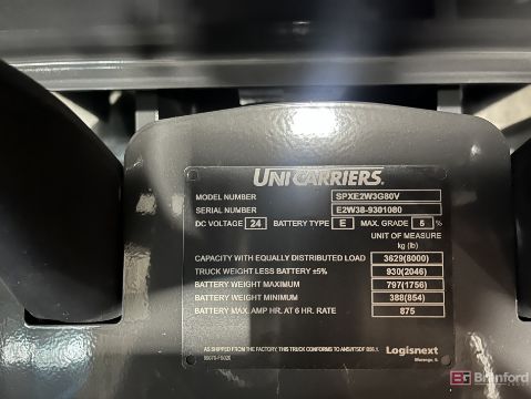 UniCarriers Electric Center Ride Pallet Jack w/ 96" Forks; Model: SPXE2W3G80V; S/N E2W38-9301080; 0-Hours