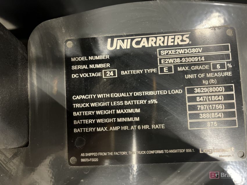 UniCarriers Electric Center Ride Pallet Jack w/ 48" Forks; Model: SPXE2W3G80V; S/N E2W38-9300914; 310-Hours