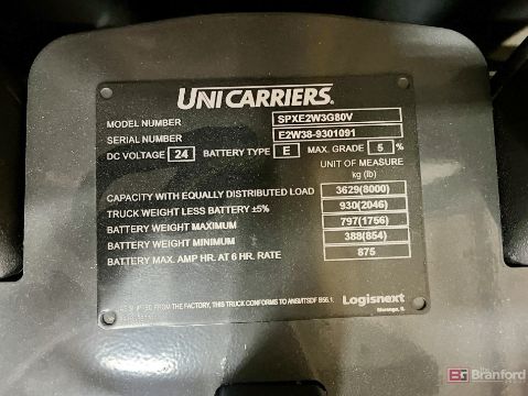 UniCarriers Electric Center Ride Pallet Jack w/ 96" Forks; Model: SPXE2W3G80V; S/N E2W38-9301091; 0-Hours