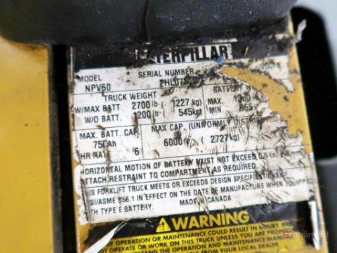 Caterpillar 24 Volt Ride-On Pallet Jack Model NPV60 No Charger (Note Steering Is Binding)