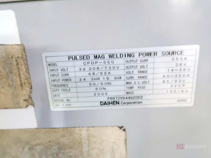 Yaskawa Motoman Welding Cell Robot YR-EA1400N-A00, Manipulator S4M169-1-2, OTC Daihen Pulsed Mag Welding Power Source CPDP-350, And Yaskawa NX100/ EA1400N