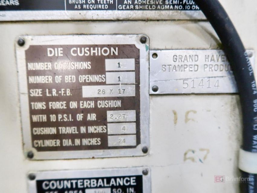 Minster G1-150 150-Ton Gap Frame Press, S/N G1-150-18001, Bolster Area: 50" LR X 30" FB, Strokes Per Minute: 35, Capacity: 150 Ton, Length Of Stroke: 8", Slide Adjustment: 6", Shut Height On Bed SDAU: 22.5"