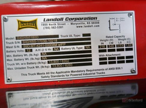 Landoll B40/48i5180D Bendi LPG Forklift 3,600-Lb (Note Late Removal Date November 1st) Hours Will Change As Lift Is Being Used