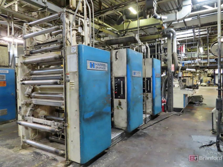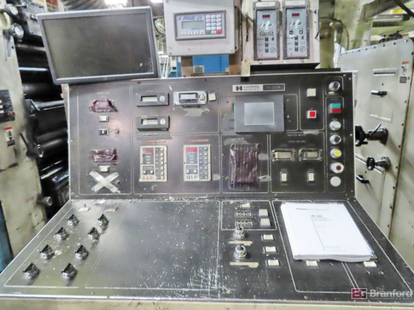 Harris Graphics M-300M 36" Wide Web Offset Press, 22.776" Cutoff, S/N MCD004.214 (516812), w/ Power Turn Conveyor, Console Folder; (Press 2c)