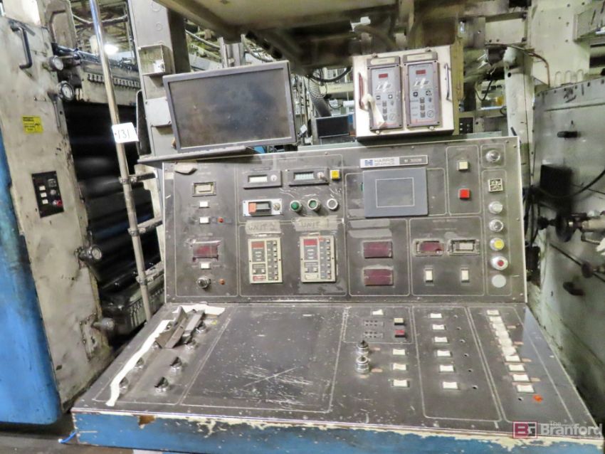 Harris Graphics M-300M 36" Wide Web Offset Press, 22.776" Cutoff, S/N MCD0056.279 (516812), w/ Power Turn Conveyor, Console Folder; (Press 2d)