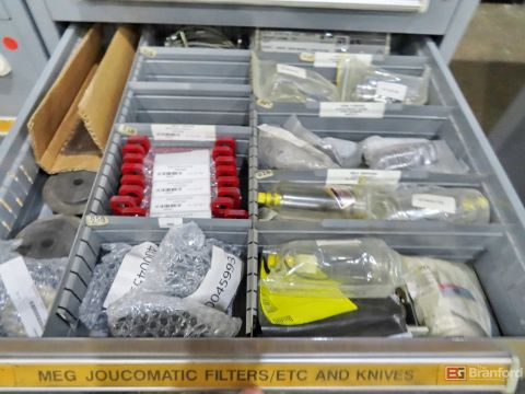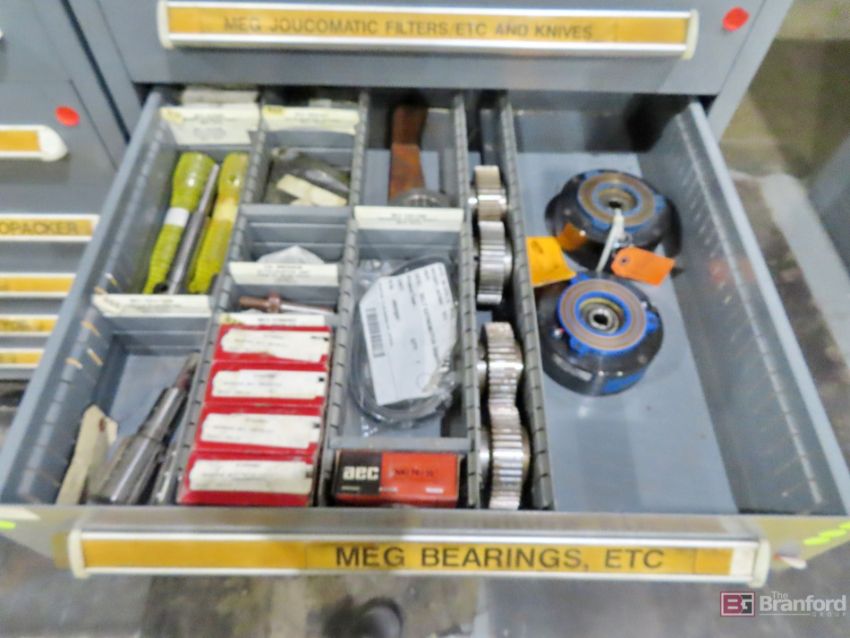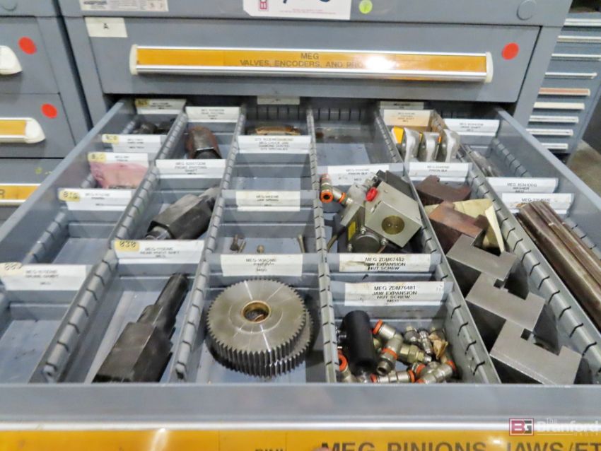 9-Drawer Vidmar Cabinet W/ Meg Parts, Brakes, Stops, Pinions, Etc.