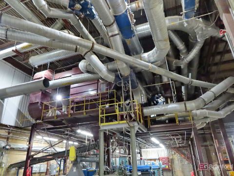TCS Trim Control Center Dust Collector, 16-Station, W/ [2] Outlet Fans, 50-HP Motors, Divert, (6) Inlet Fans, Control Panel, Mezzanine [Must Cap Roof & Wall]