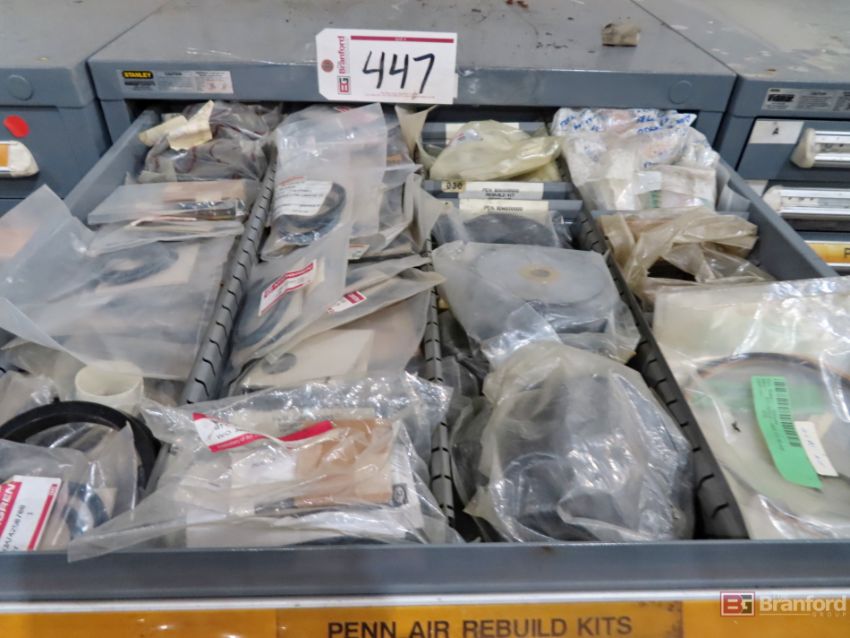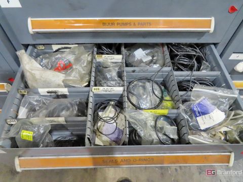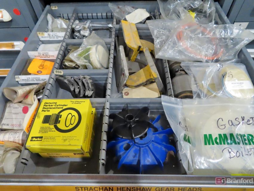 9-Drawer Vidmar Cabinet W/ Lubricators, Sprockets, Step Motors, Belts, Etc.