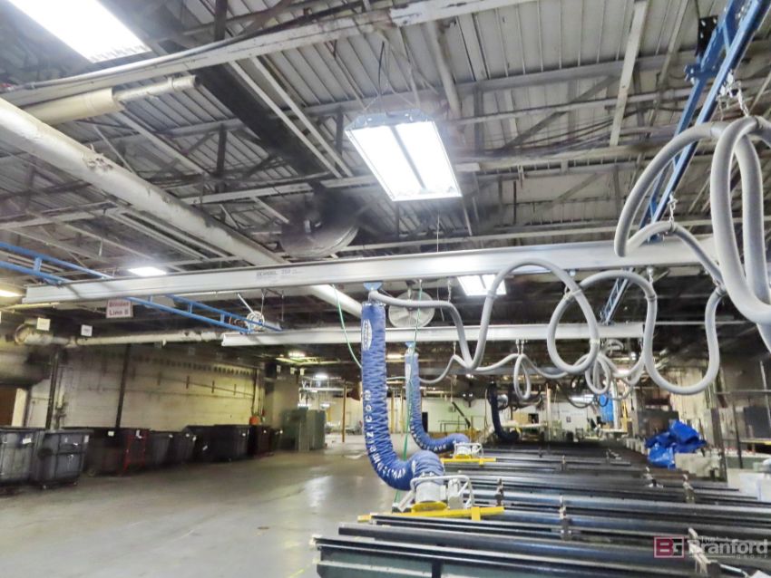 Gorbel 250-LB. Capacity 3-Station Bridge Crane, W/ Approximately 21' Span, [3] Schmalz Vacuum Lifters & Pumps
