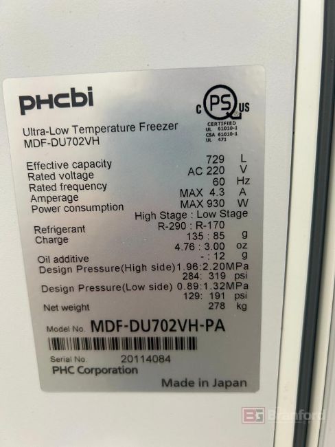 PHCBI -80C Freezer; Model: MDF-DU702VH-PA; S/N 20114084; On Casters