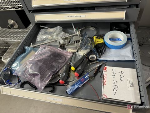 Vidmar 14-Drawer cabinet & contents including: BNC to SMA Cables, Posts & hardware for breadboard tables; mounts & posts, Keithley probes, data transfer switches, etc - please review photos for more details, Located in West Henrietta, NY