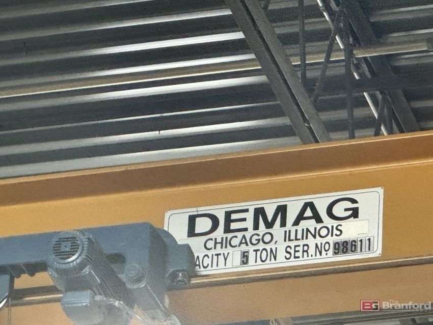 Demag 5-Ton Single Girder Overhead Crane, w/ 160' Long Runway, 35' Span, 24' Under Hook, Note - Uprights Not Included