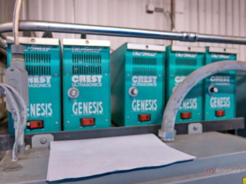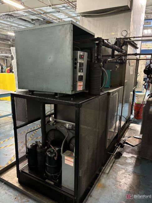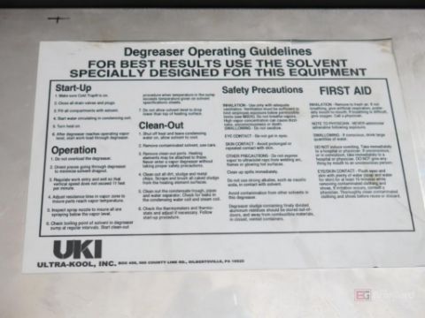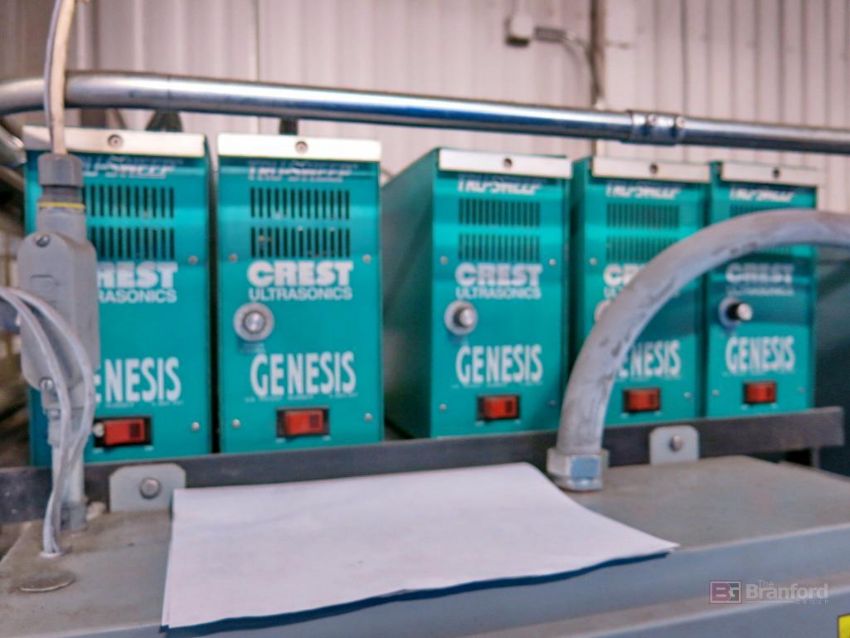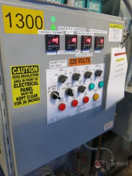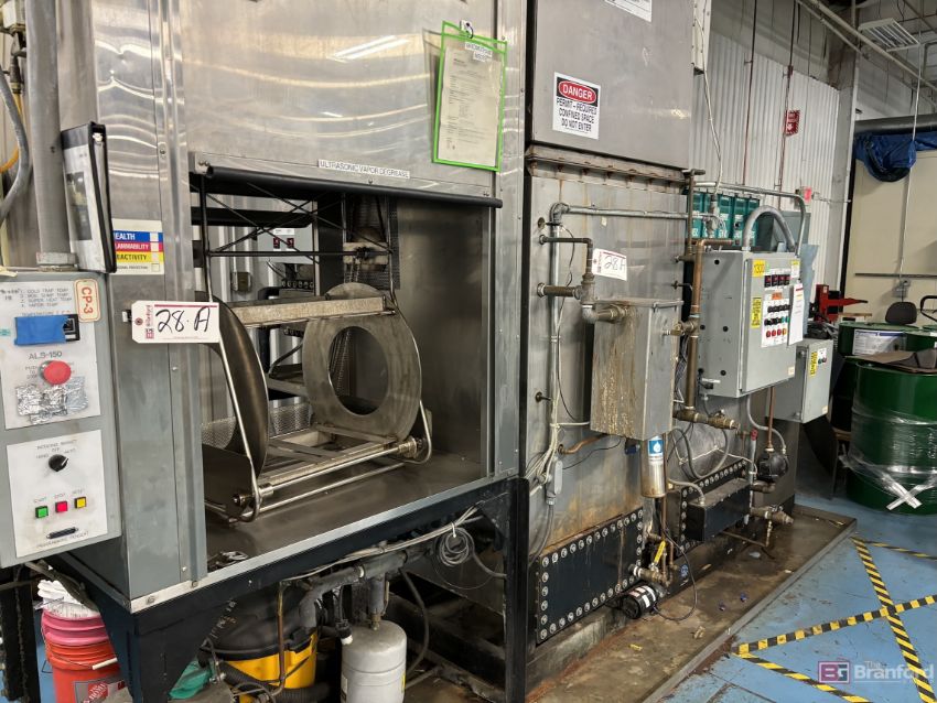 Ultra-Kool (UKI) ALS-150 Ultrasonic Vapor Degreaser w/ (7) Crest Ultrasonics Genesis Truesweep Generators Model 4G-500-6-T, Emerson Climate Technologies Refrigeration Chilling System, Assoc. Lifting Chamber w/ Rotating Basket; NOTE: Ultra-Kool Model 10-15 ELE Still System is Not Included
