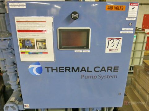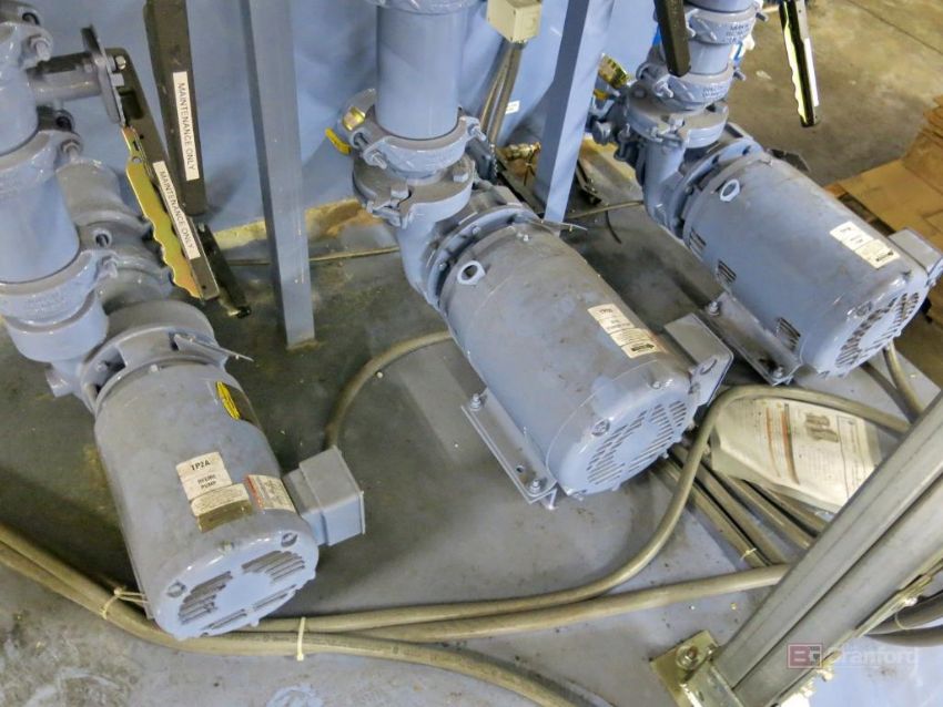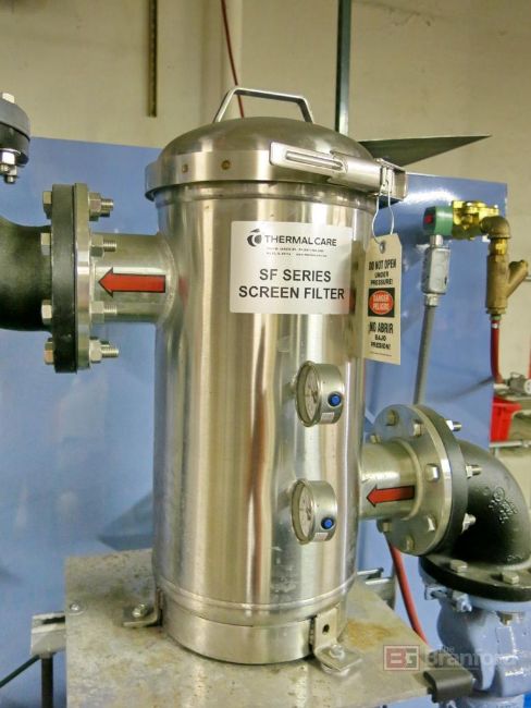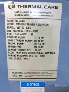 Thermalcare Model PTS1000 Power Reserve Pump System Recirculating Water Tank, w/ Baldor 7.5-HP Recirculating Motor, (2) Baldor 15-HP Recirculating Pump Motors, S/N 32079012004, w/ Thermalcare SF Series Screen Filter