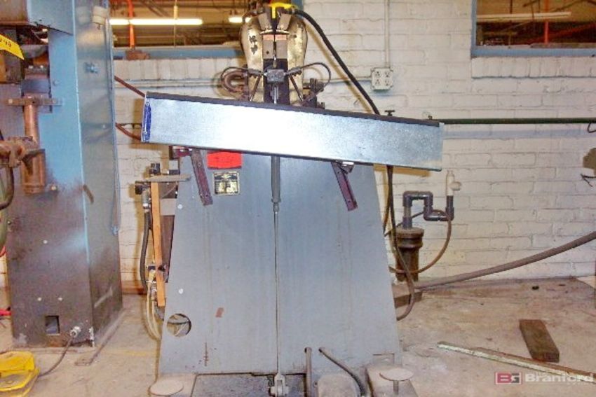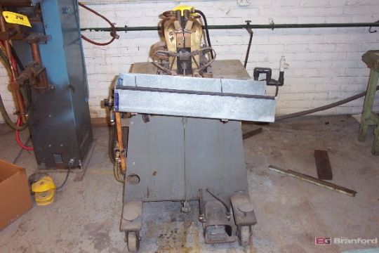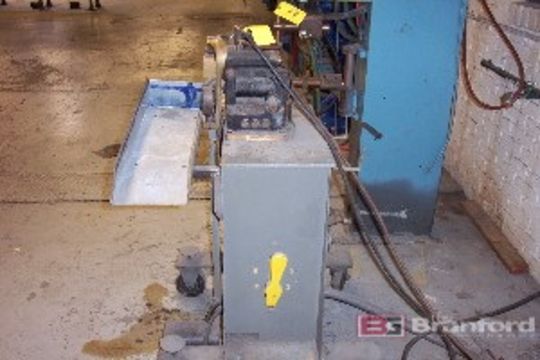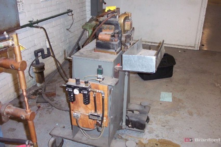 Micro J5S Butt Welder; steel wire: .080" to .250" (2.0-6.5mm); 240V, 3-ph, 60 cycle; 80 amps; 17.5 KVA transformer; water cooled welding head; air operated foot pedal; Gavlick Inventory # 672-0697.1