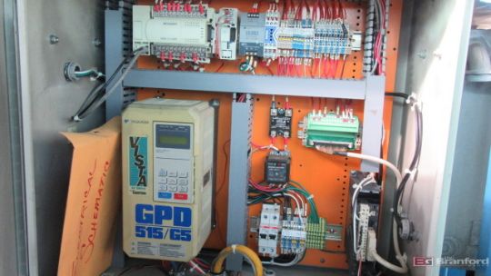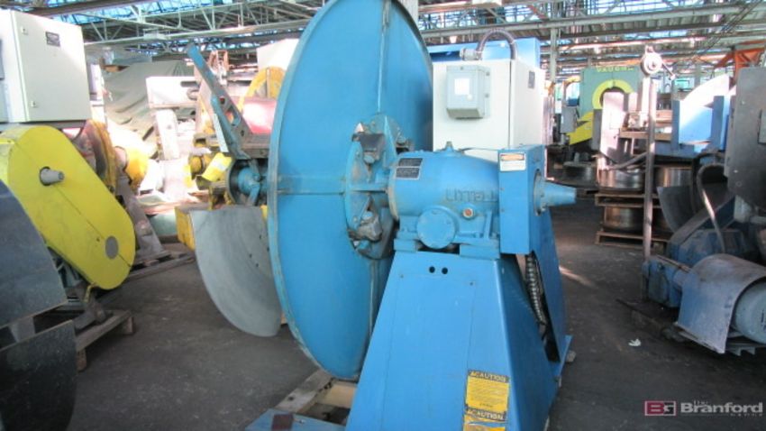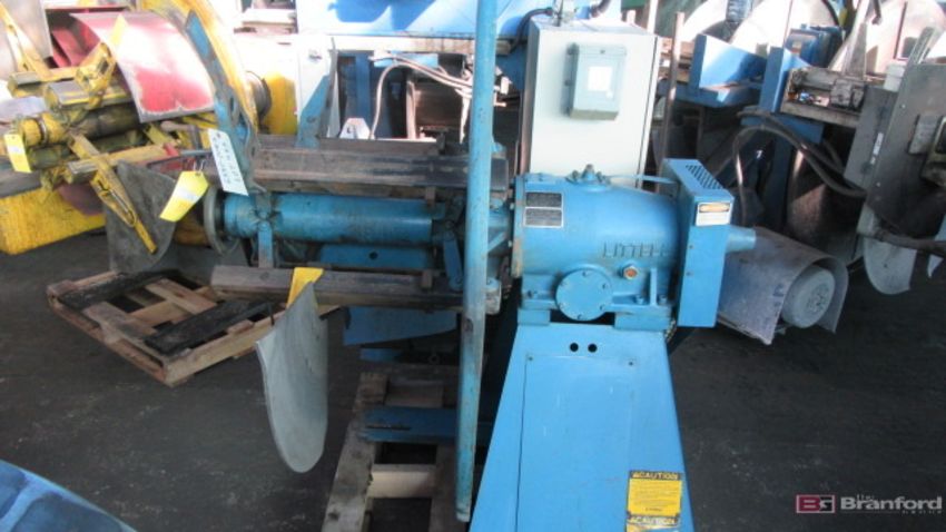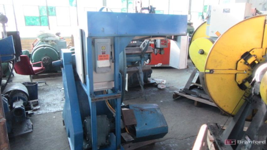 Littell Single End Wire Winder; 6,000-Lb. cap; I.D. range: 15" to 20", O.D. 60"; powered; collapsible flanges/fingers; traversing Filmetec retrofit traverse system with electrical controls; round & shape wire up to .750"; 10-300 FPM; max. traverse 14"; Yaskawa AC drive/ Mitsubishi Prog. Controller; 5-HP AC motor; Gavlick Inventory # 633c-2083.2