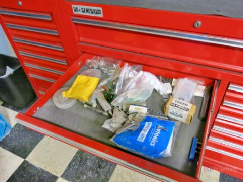 US General 42" x 18" 20-Drawer Rolling Toolbox, w/ hardware, hose, fittings, etc.