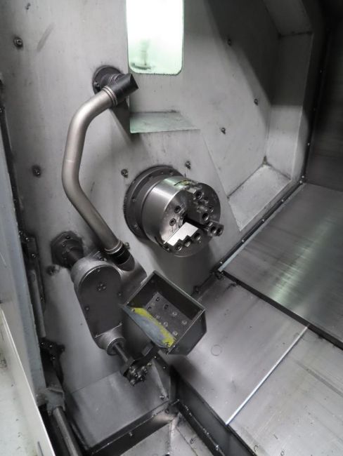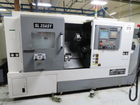 Samsung SL 25ASY CNC Turning Center, Fanuc 0i-TD CNC Control, 25.6” Swing, 18.7” Machining Length, 8” Chuck Left Spindle, 6” Chuck Right Spindle,12-Station Turret, Live Tooling, 4,000 RPM, Part Catcher, Toolsetter, Chip Conveyor, S/N 12C2K0072 [2013]