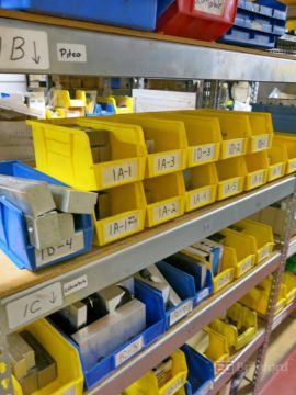 Sections of 7' x 4' x 16" Shelving, w/ aluminum, vise jaws, castors, etc.