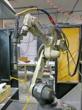 Panasonic Performarc Robotic Welding System, w/ Panasonic Mdl. VR-006 robotic mig welding robotic arm manipulator, Panasonic Mdl. YA-1 robot controller, 27-KVA transformer, Mdl. YA-1GSB31 dual 36" x 24" shuttle system positioner unit, pendant control, S/N: 00150M (2004) [no tank]