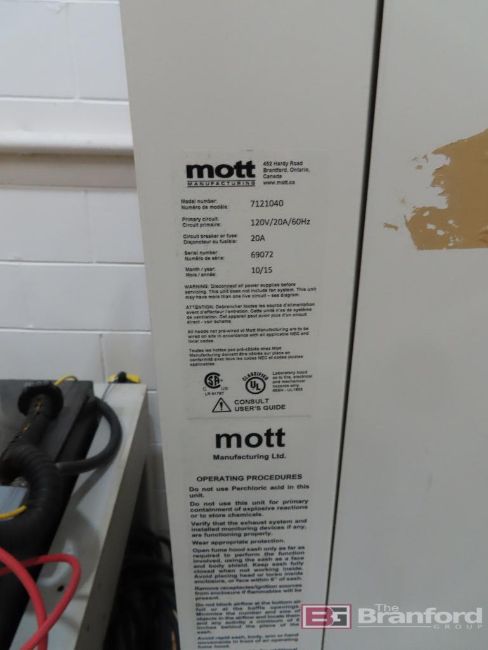 Mott Mfg. Mdl. 7121040 Fume Extraction Hood, w/ 27" x 32" x 24" Inside Dimensions, S/N: 69072 (2015) [Located in Oxford, MA]