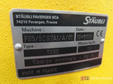 Staubli Automation Mdl. TX90 Robotic Arm, w/ 36" x 36" x 6" Granite Surface Plate, Staubli Mdl. C58C Controller, Pendant Controllers, S/N: F09/5CG7A1/A/01 (2009) [Located in Oxford, MA]