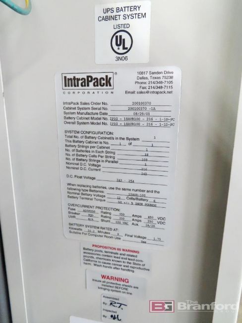 Intra Pack Corp. Mdl. IP1G-18AVR100 Battery Backup System, S/N: 200100370 (2001), [Located in Leicester, MA]
