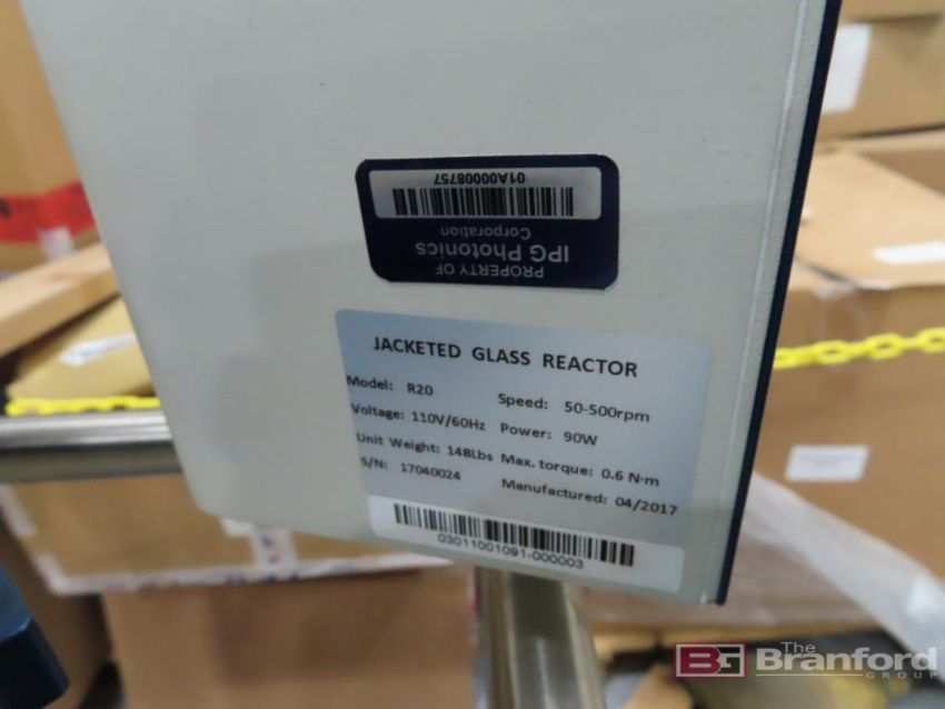 Across International Mdl. R-20 Jacketed Glass Reactor, S/N 17040024 (2017), w/ 20,000-ML Beaker, Electric Mixer & Cart [Located in Oxford, MA]