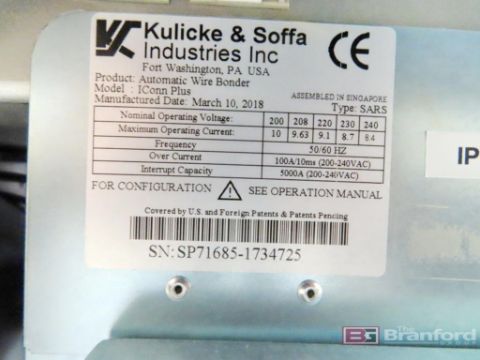 Kulicke & Soffa Industries Inc Mdl. IConn Plus Automatic Wire Bonder, w/ Scope, S/N SP71685-17334725 (2018), Type: SARS [Located in Oxford, MA]
