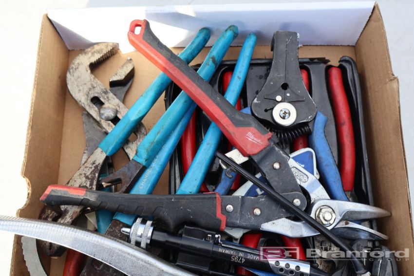 Box Lot of Channel Lock Pliers, Cutters, Dikes, Wire Stripper