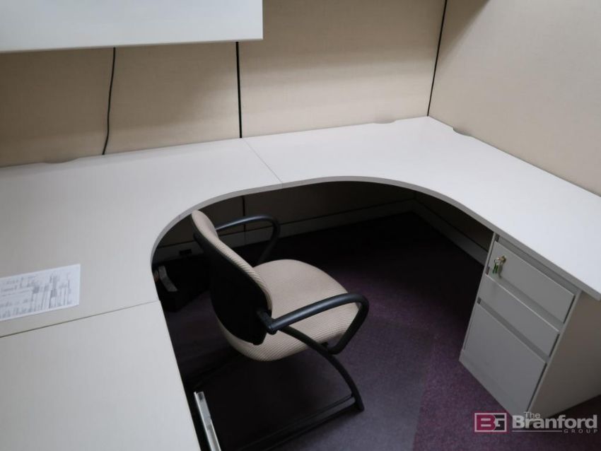 (6) Modular Cubicle Sections w/ (10) Chairs, HP Laserjet Pro 200 Color M251NW Printer, Dell Precision T1650 Computer, (2) Monitors, (10) 4-Drawer Vertical File Cabinets, Located on 2nd Floor