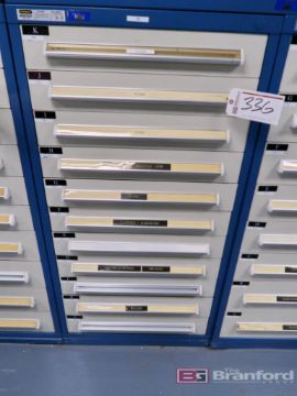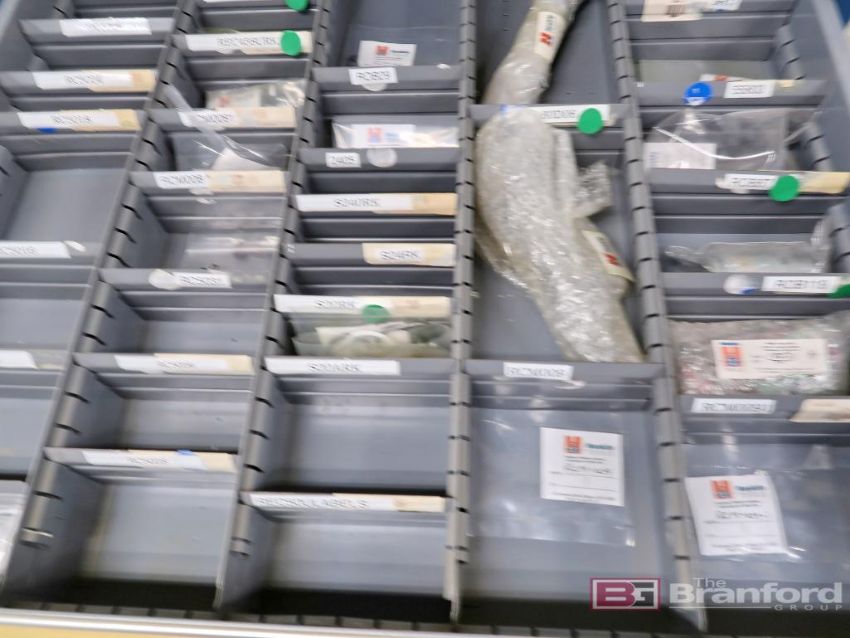Stanley Vidmar 11-Drawer Heavy Duty Storage Cabinet w/ Contents to Include: Husky Parts, White Stream Bearings, Fuses, Filters, Latches, Hardware, Electrical Fittings, Other Industrial Related Items, Please See Photos