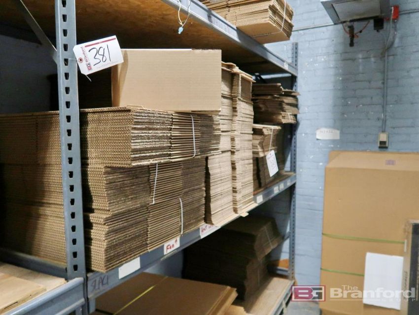 (4) Sections of Clip Together Heavy Duty Racking w/ Contents to Include: Various Sized Corrugated Boxes, (3) Rolls of 1/2" x 48" x 24' Bubble Wrap