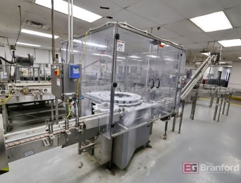 DTM Packaging Ltd. Aerosol Depucker Machine, 1.488 x 5.51, S/N: 19340 (1985), This lot is subject to the Bulk Bid Lot 126. If the hammer price of Bulk Bid Lot exceeds the aggregate total of the bids placed on individual lots, the sale of the individual lots will be voided and Bulk Bid will be awarded. However, if the aggregate total of the individual lot bids exceeds the hammer price of Bulk Bid Lot, the individual lots (127 to 154) will be awarded separately.